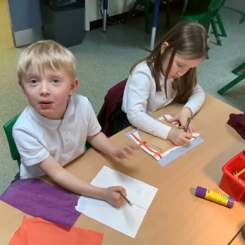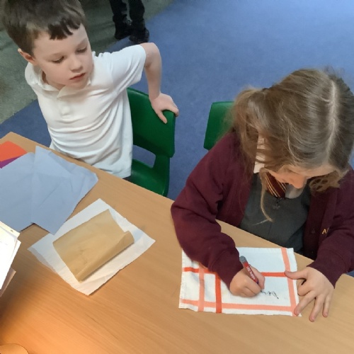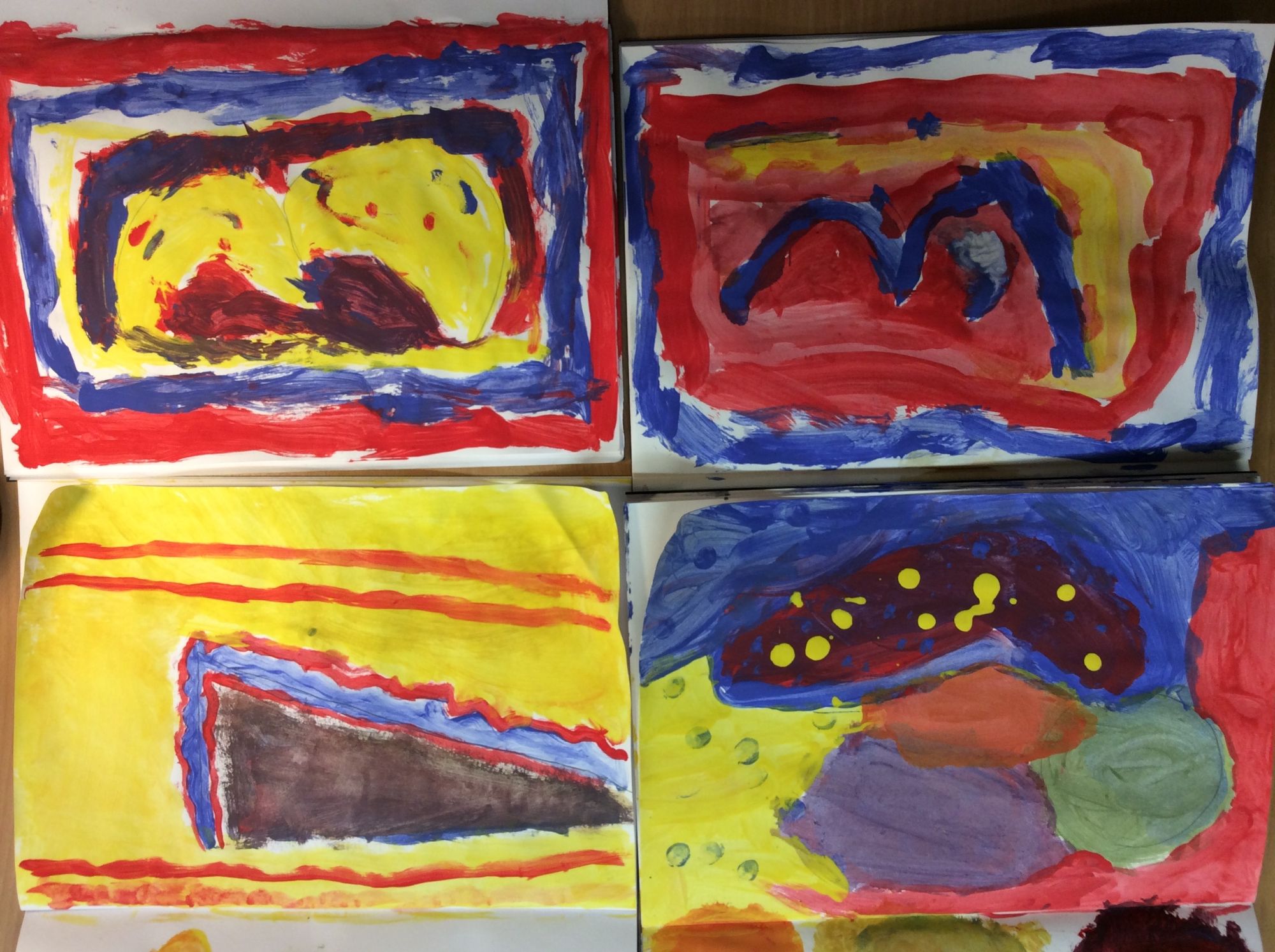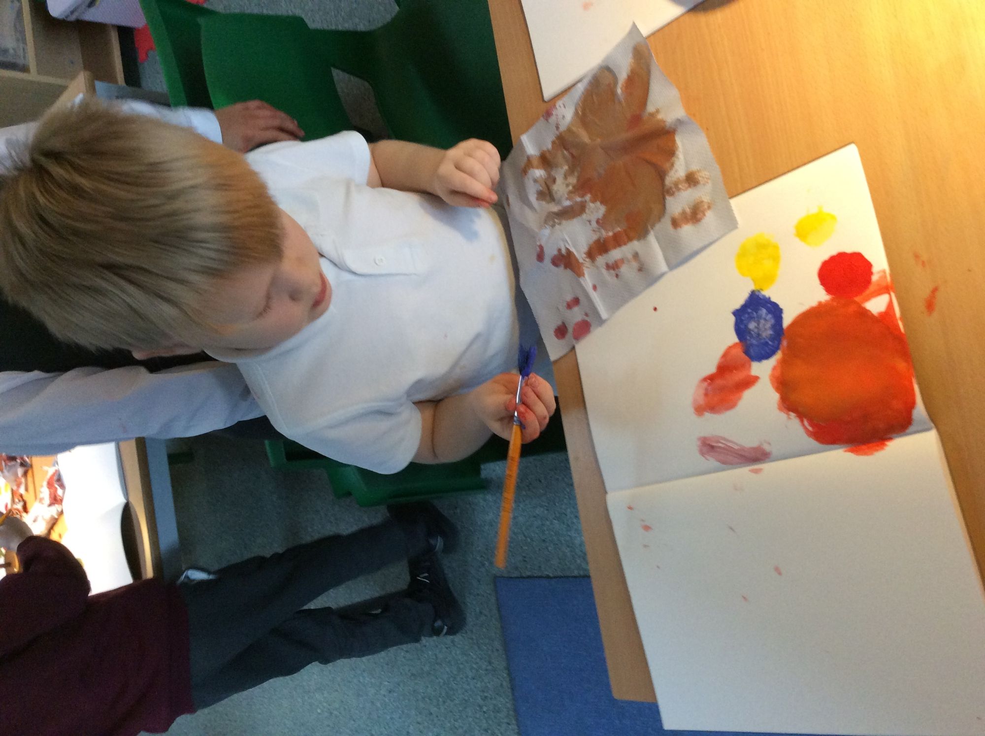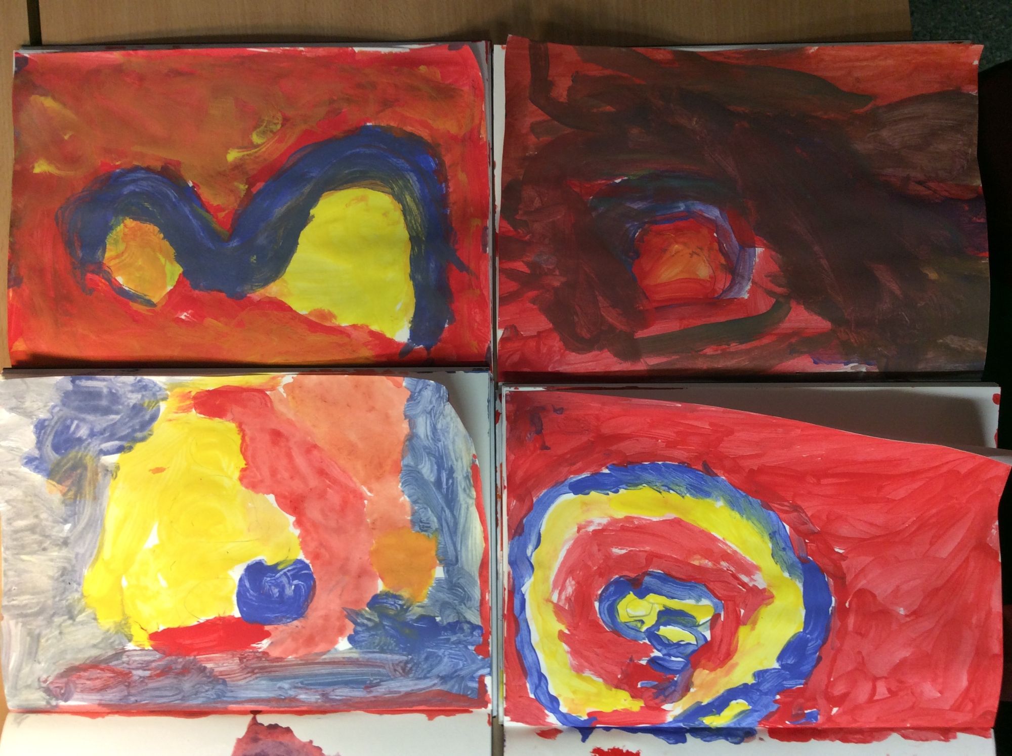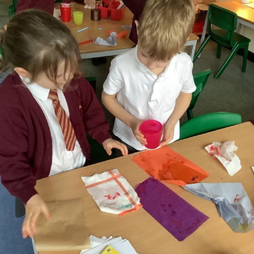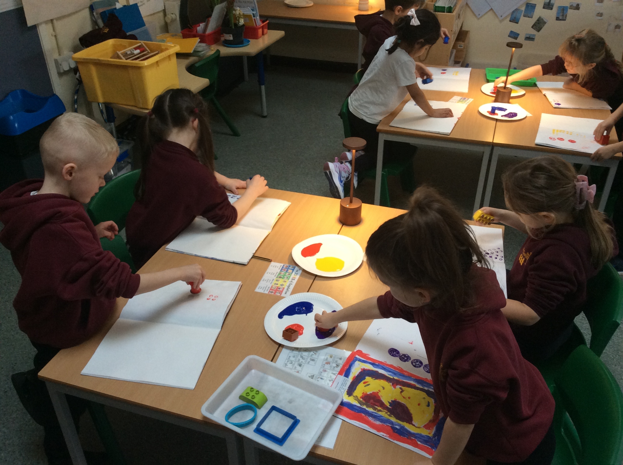 This week we looked at painting printing. Overlapping our prints with another colour to look at colour mixing too.