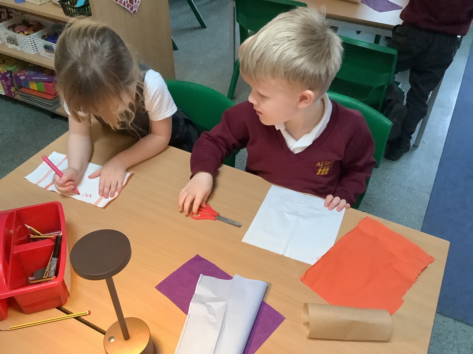 We continue to work on our fine motor control through fun activities. This helps to build our control when using a pencil, forming letters correctly and working on our handwriting.