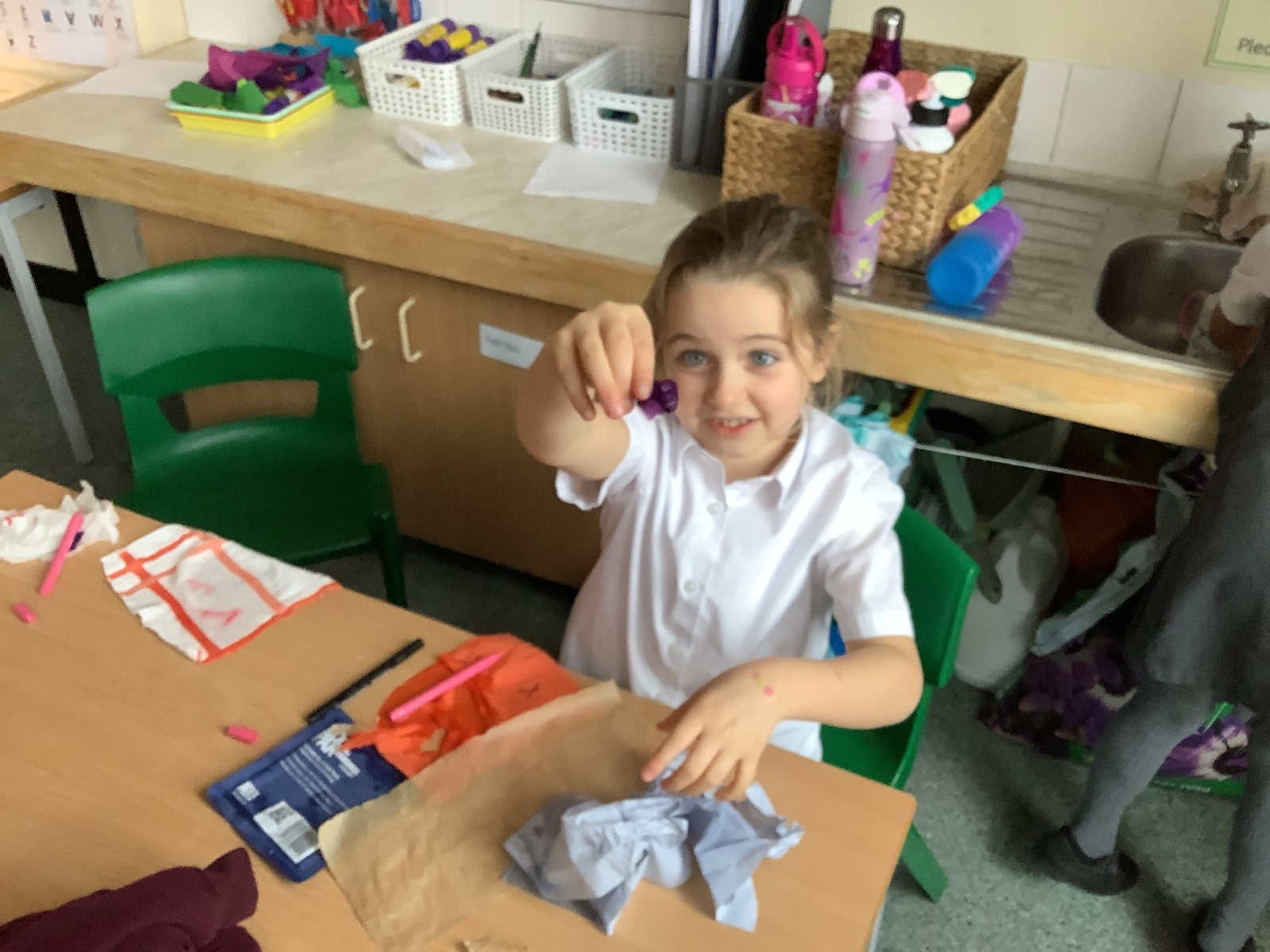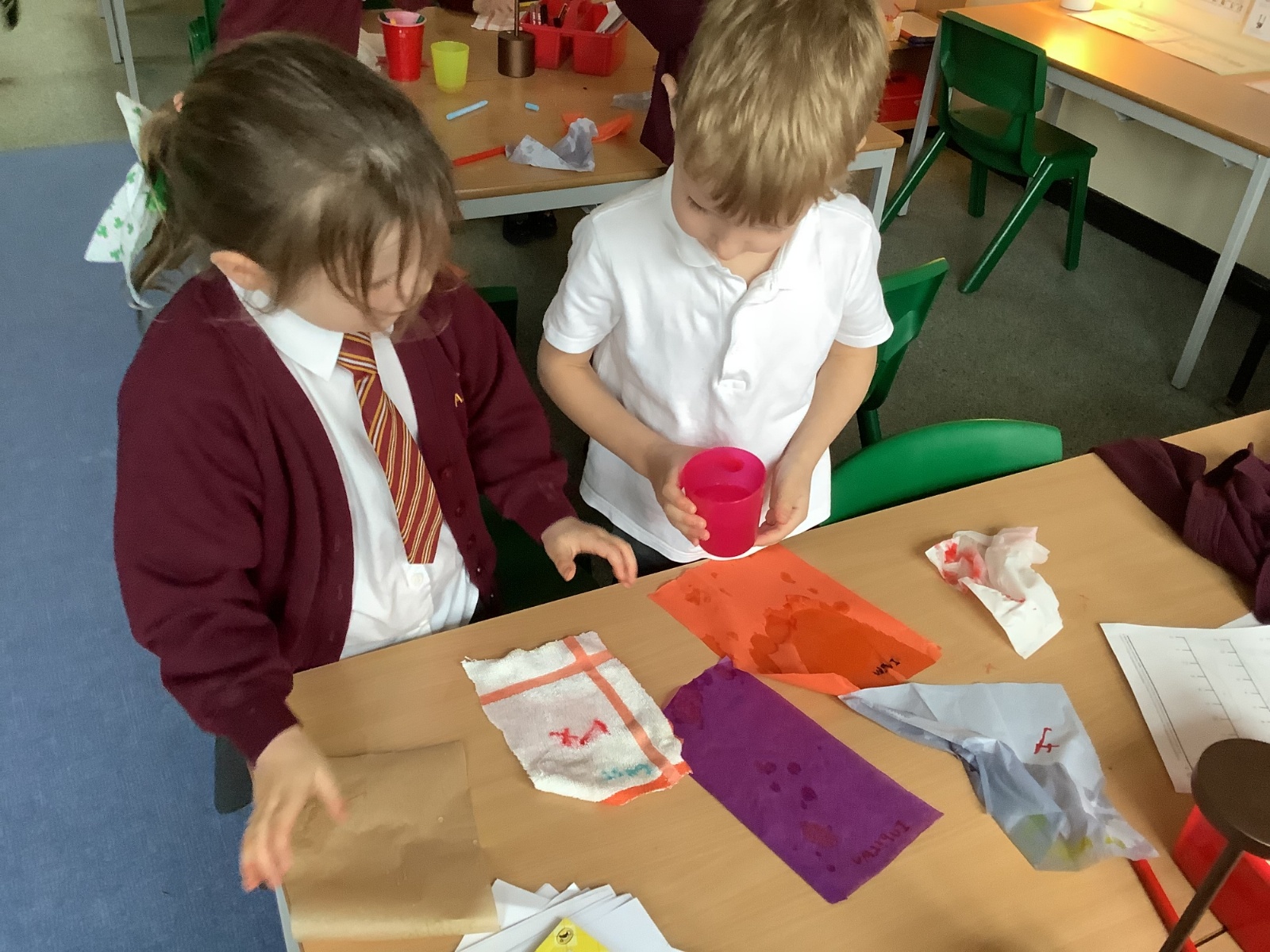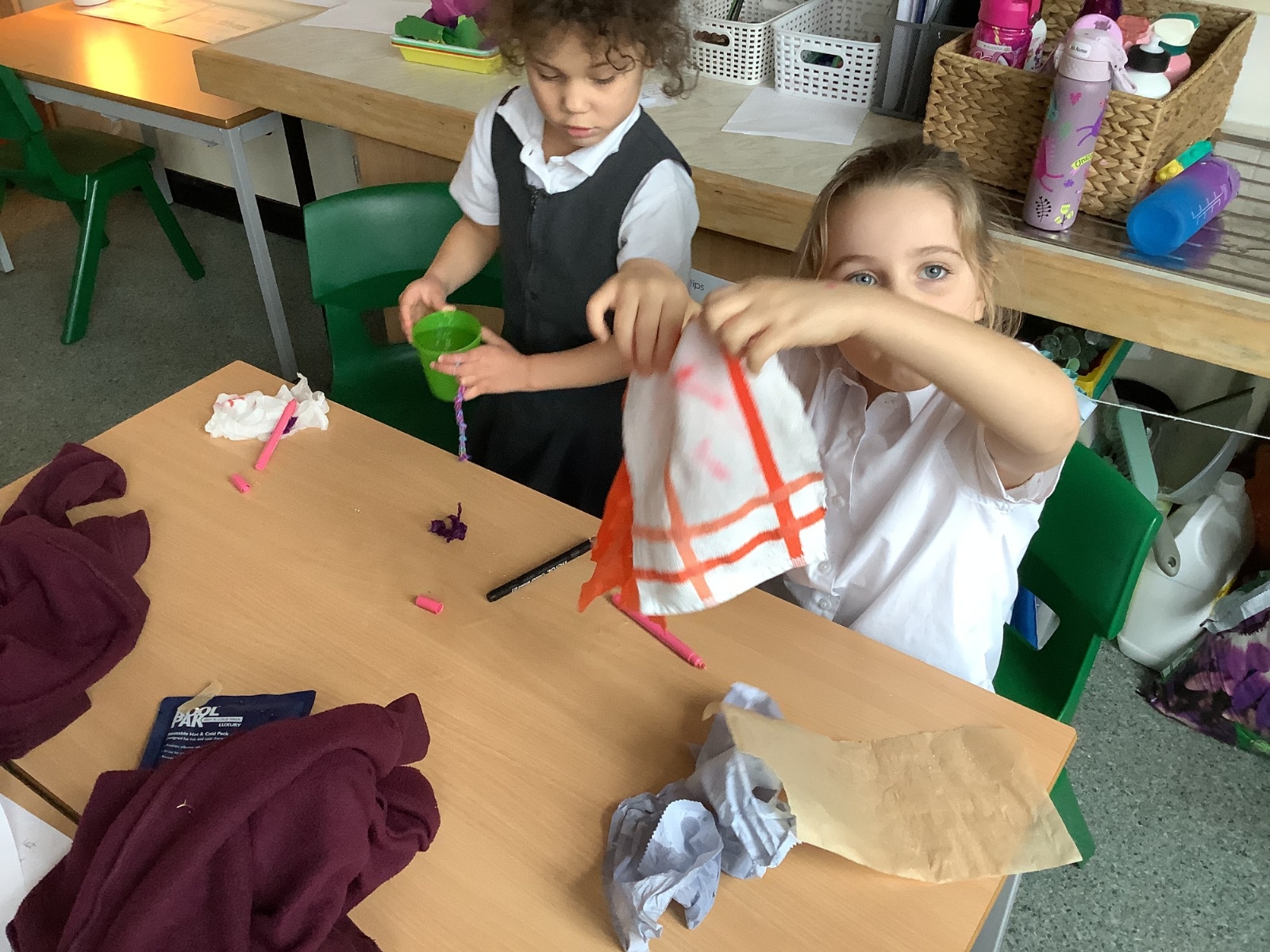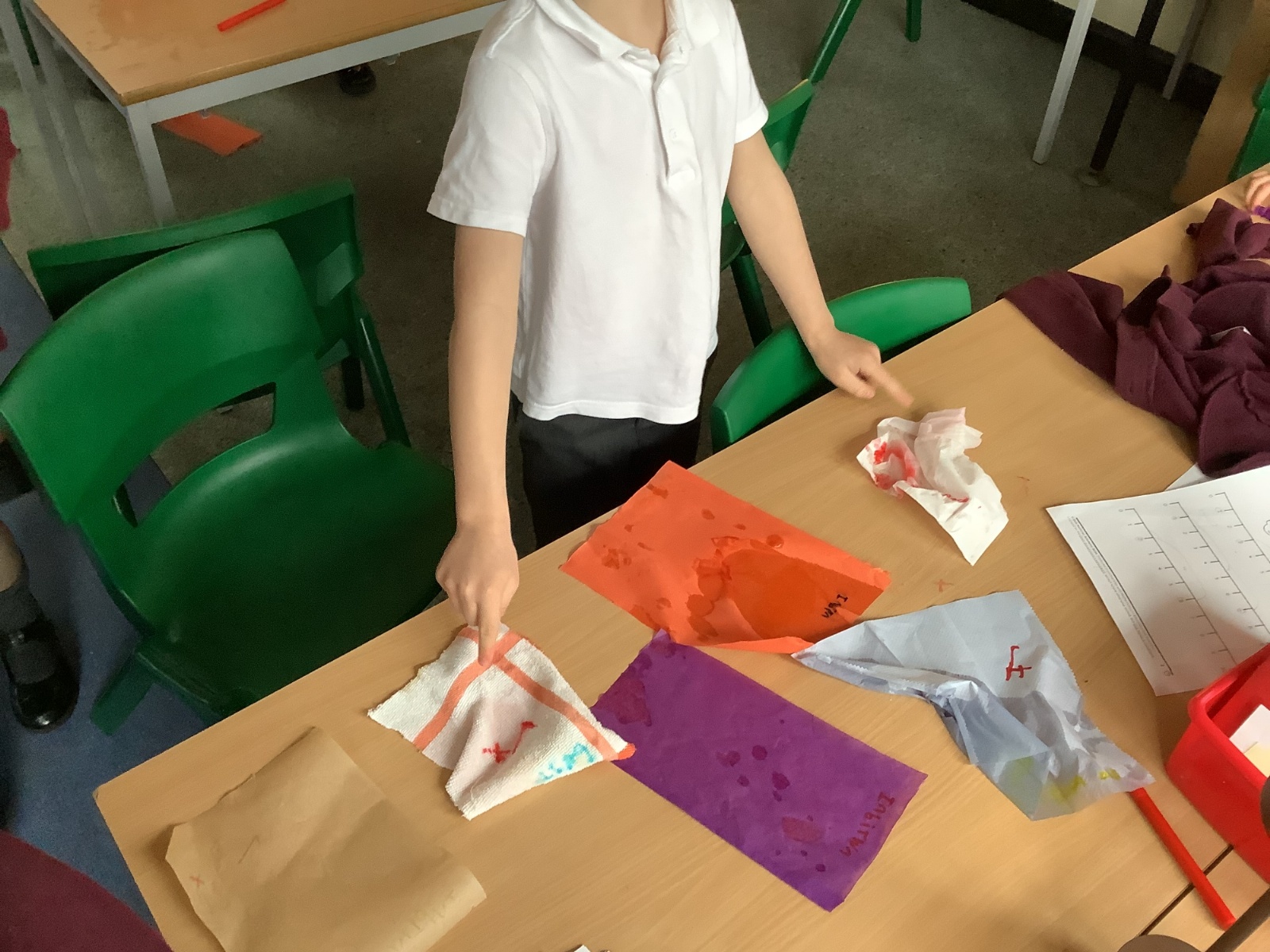 In this lesson, the children explored the question, “What makes the best hankie when you have a cold?” They began by making predictions about a range of materials, considering which might be the strongest and most absorbent and labelled their choices as ‘best’ and ‘worst’. The children then carried out practical tests to investigate their ideas, carefully observing and comparing how each material performed. Finally, they used their findings to rank the materials from most to least strong and absorbent, developing their scientific enquiry skills and understanding through hands-on learning.