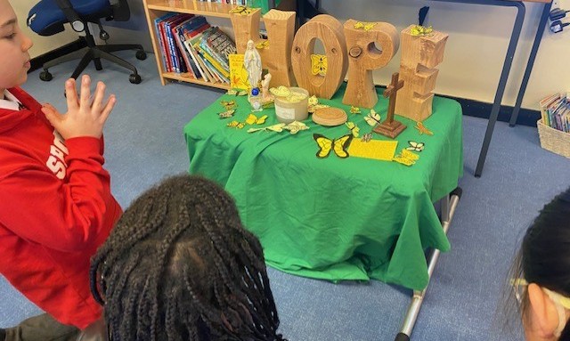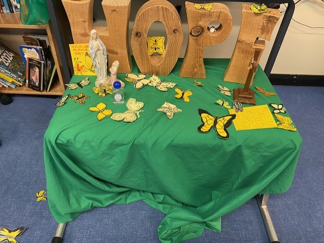 We have placed a yellow butterfly in every room across our school as a shared sign of hope. This helped us talk about how our strong Gospel values are closely linked with British Values, and how important it always is to choose what is right and act for good in our world.