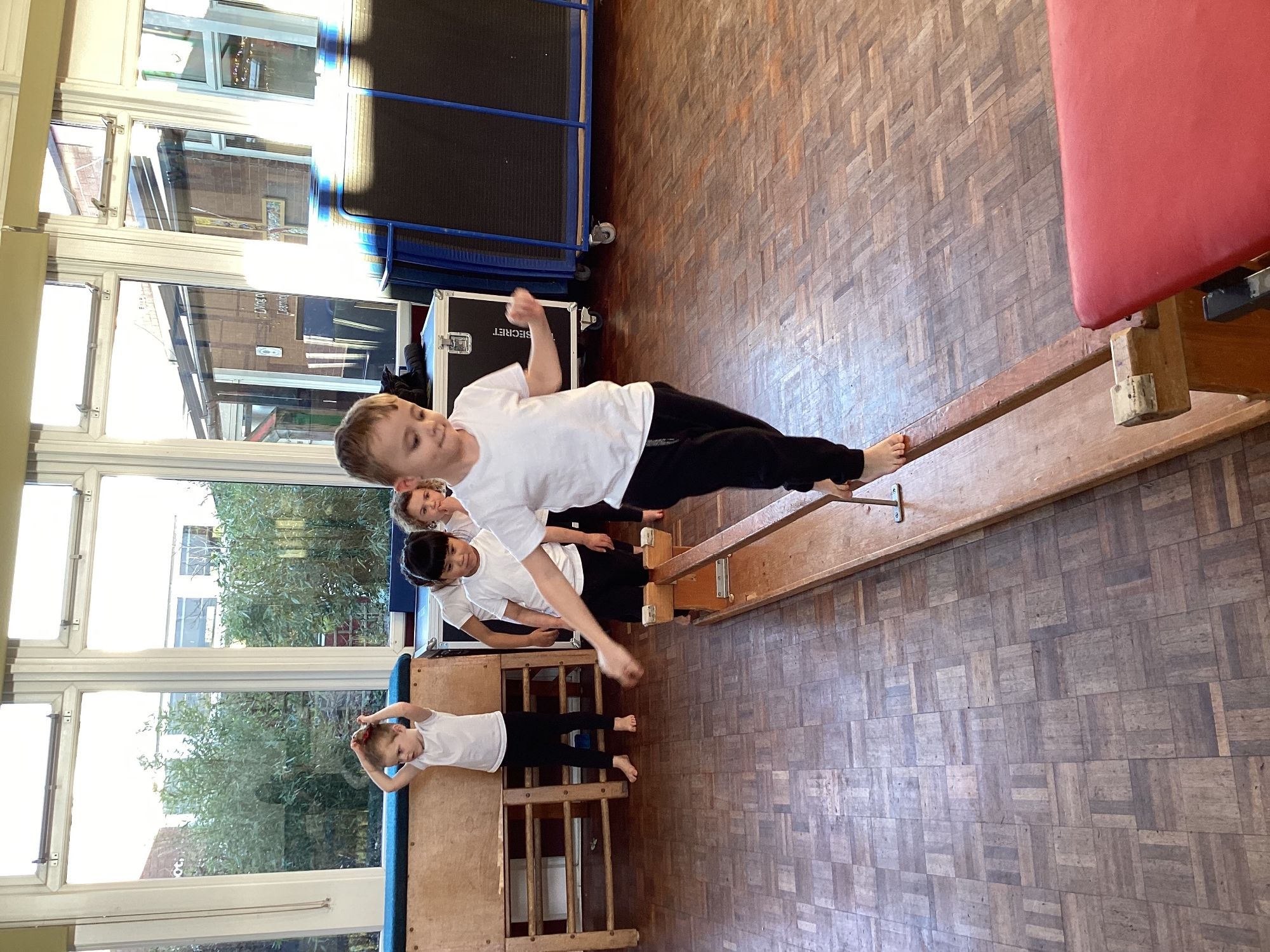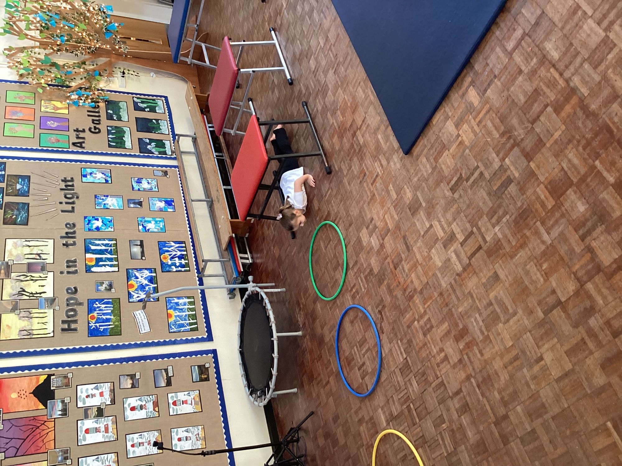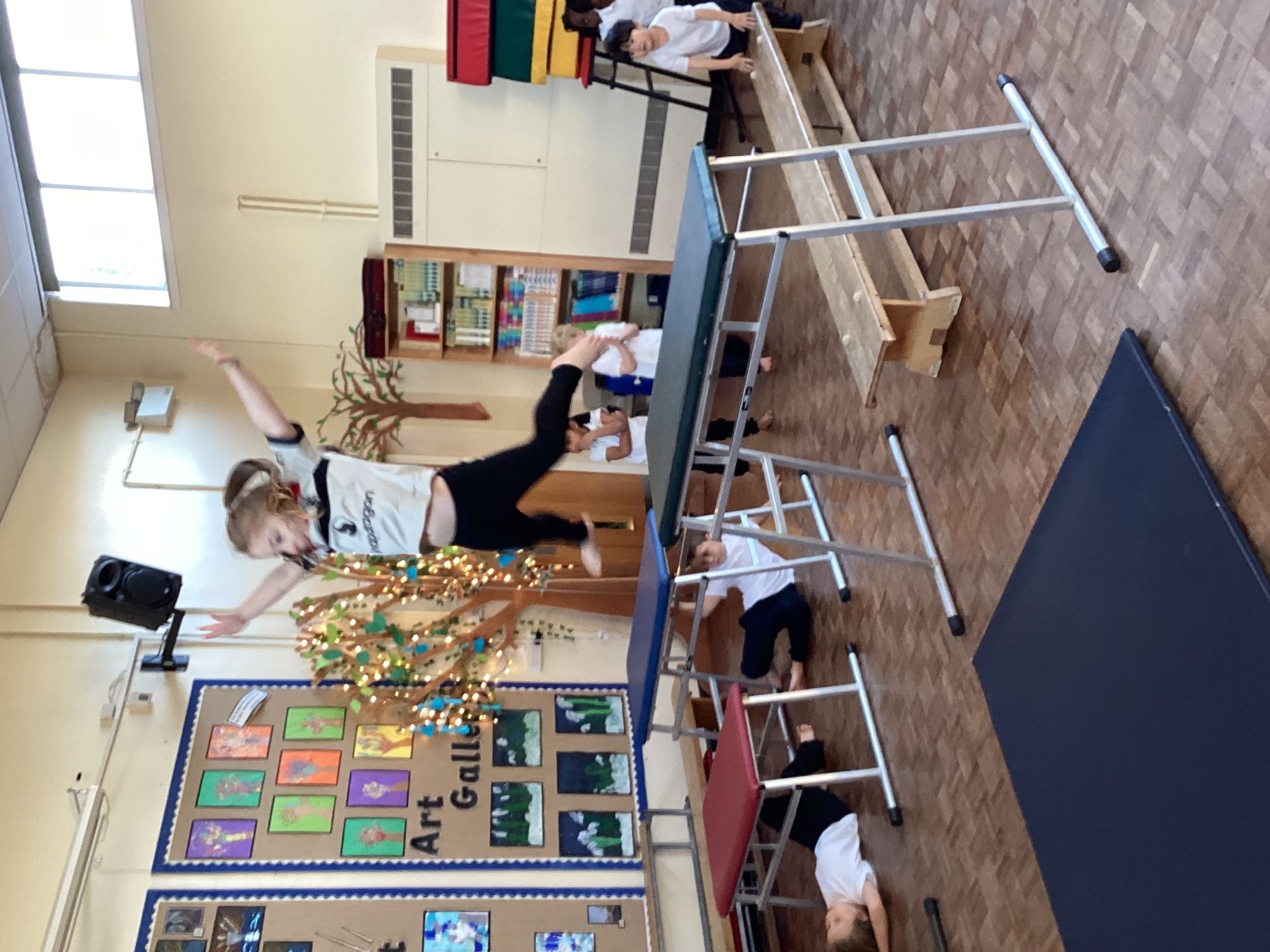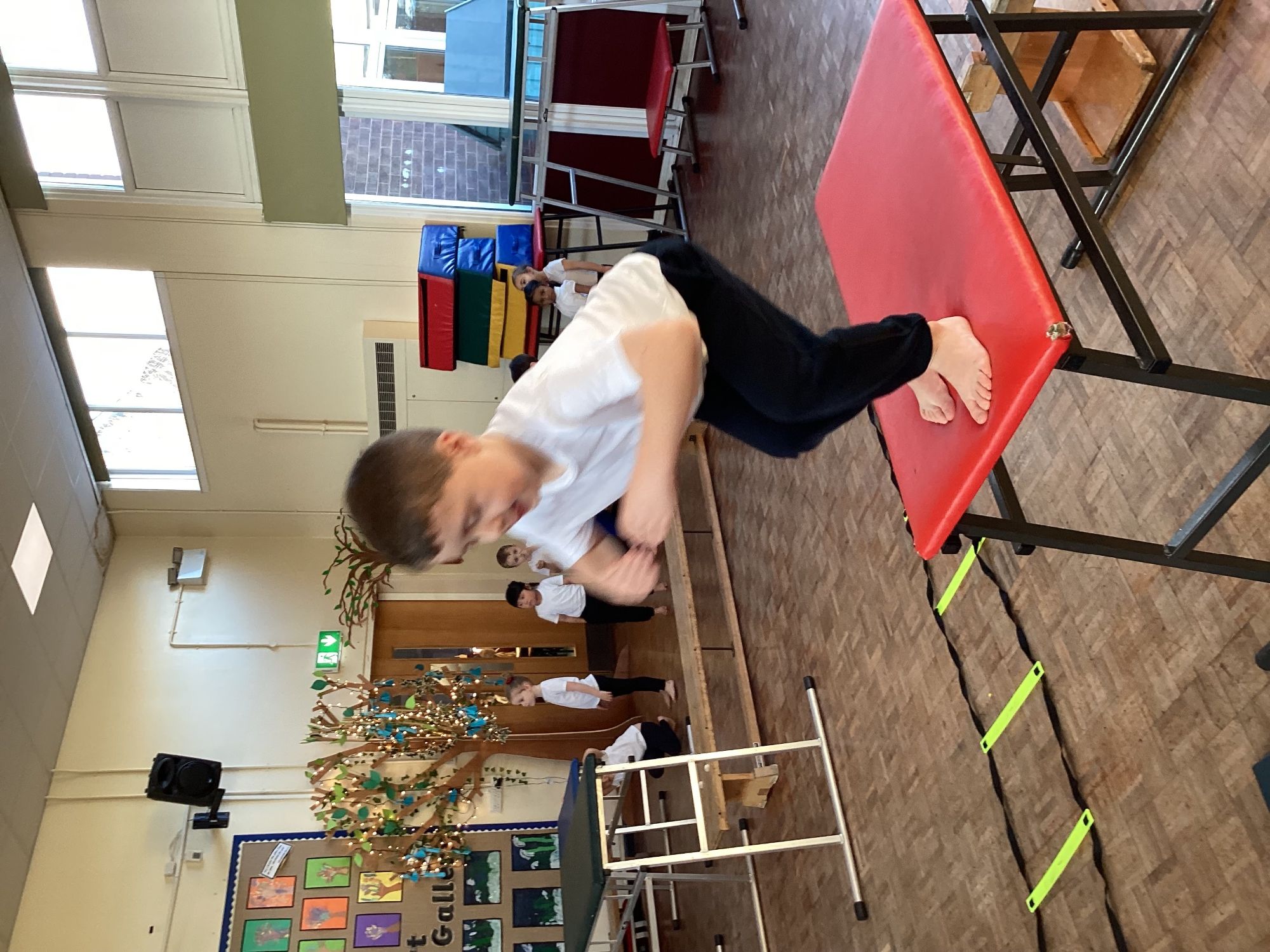 Reception are working hard in their gymnastics sessions. They are developing their travelling, balancing and movement skills while practising body shapes such as straight, tuck, pike, and star. Using a range of equipment, the children are applying the moves they are learning with increasing confidence and control.