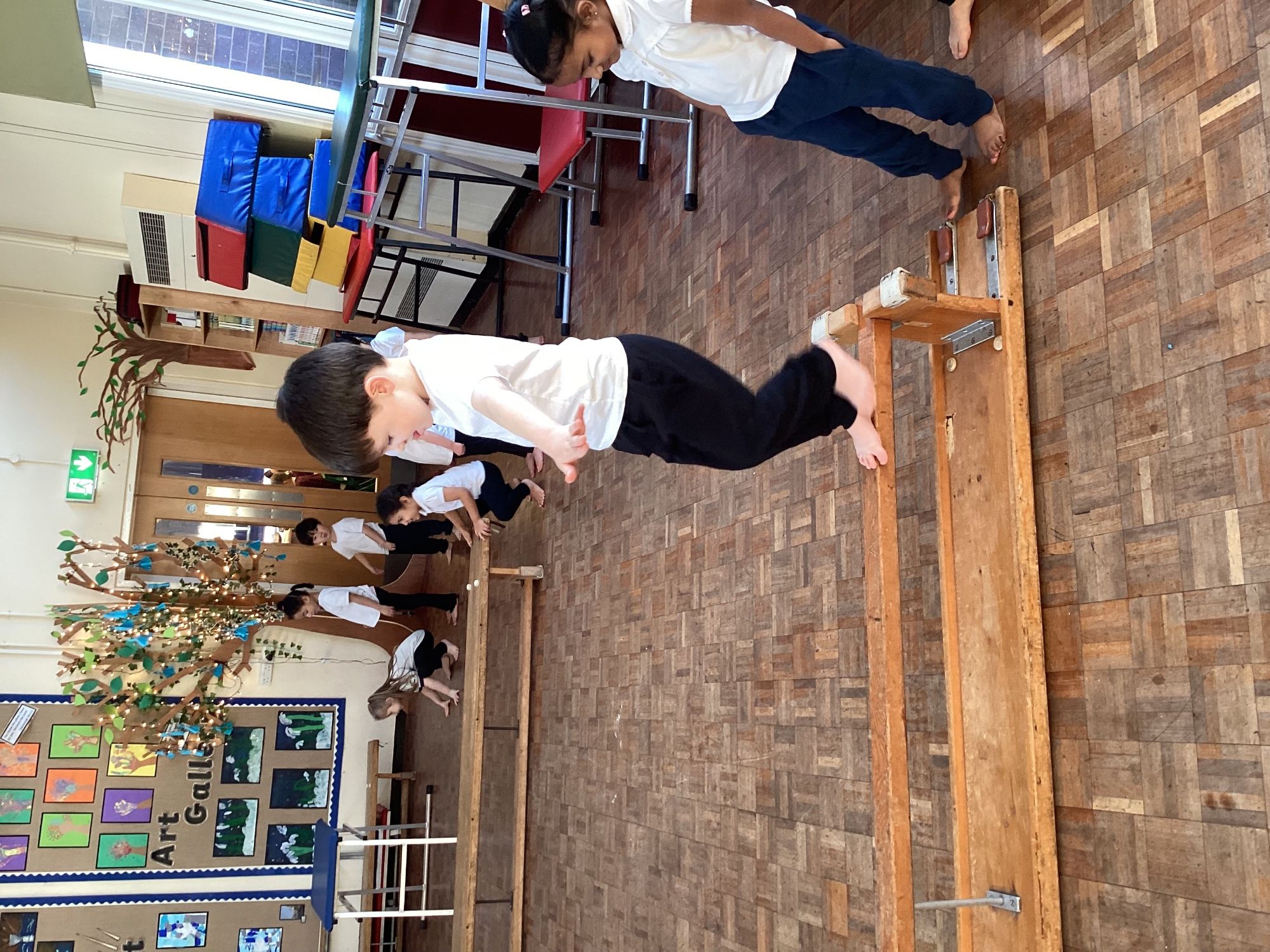 In PE, Year 2 have been practising their basic skills by learning how to control their jumping.