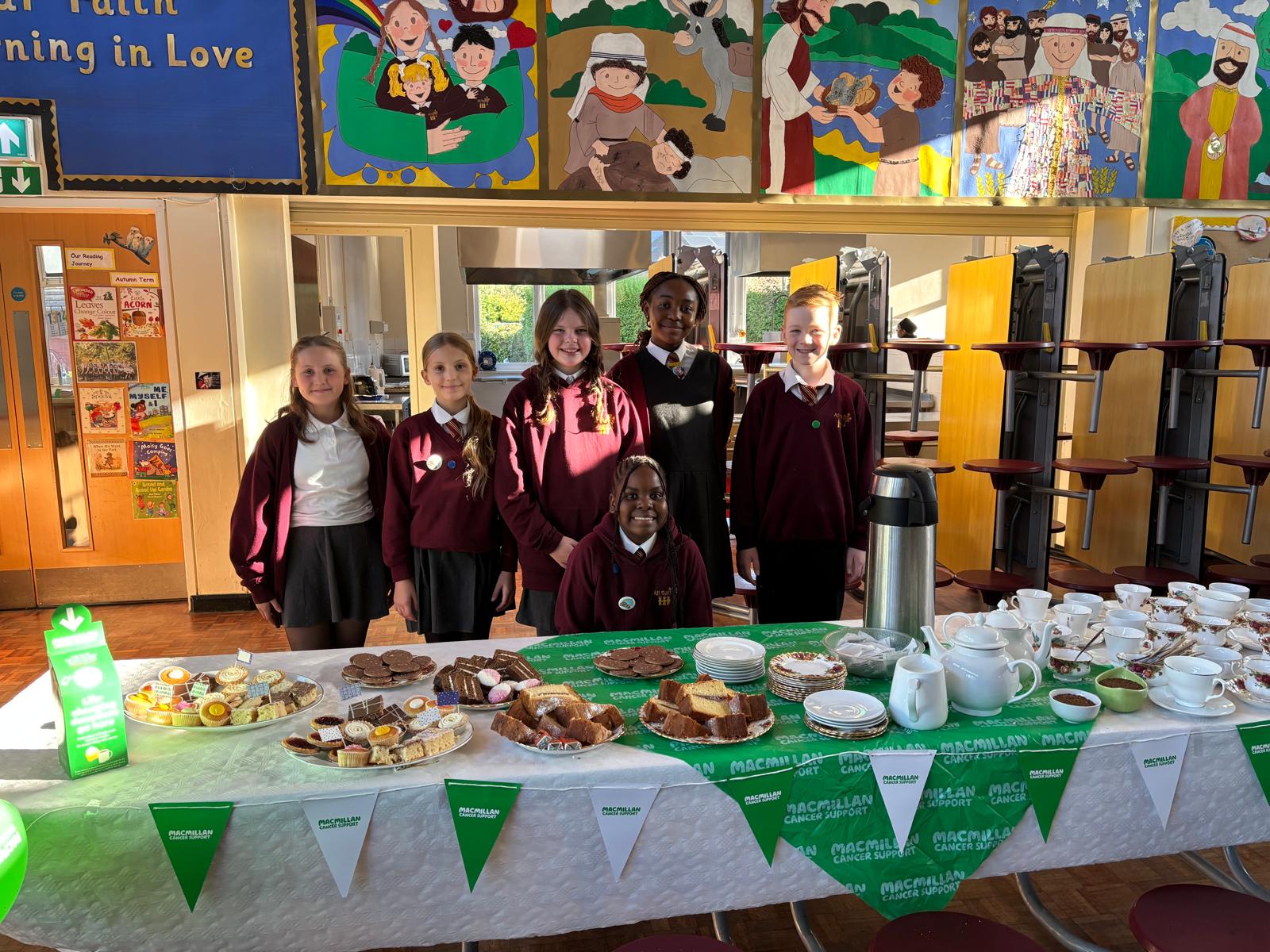 The Faith in Action group and the Mini Vinnies worked closely together to plan and lead the MacMillan Cake and Coffee Sale before and after school. Guided by our school values, we showed kindness by giving our time to help others, tried our best by organising and running the event carefully, and worked together as a team to make sure everything went smoothly. By combining our ideas and efforts, we created a welcoming and successful fundraiser that brought our school community together for a great cause.