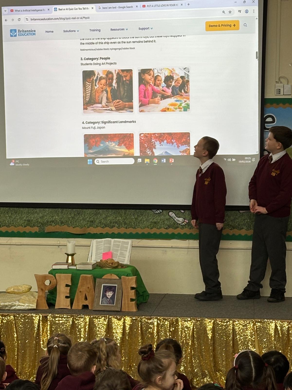 Our Online Safety Team delivered an assembly to the whole school. They discussed this year's theme AI. They quizzed the children on whether images were AI generated. They shared important ways to stay safe online.